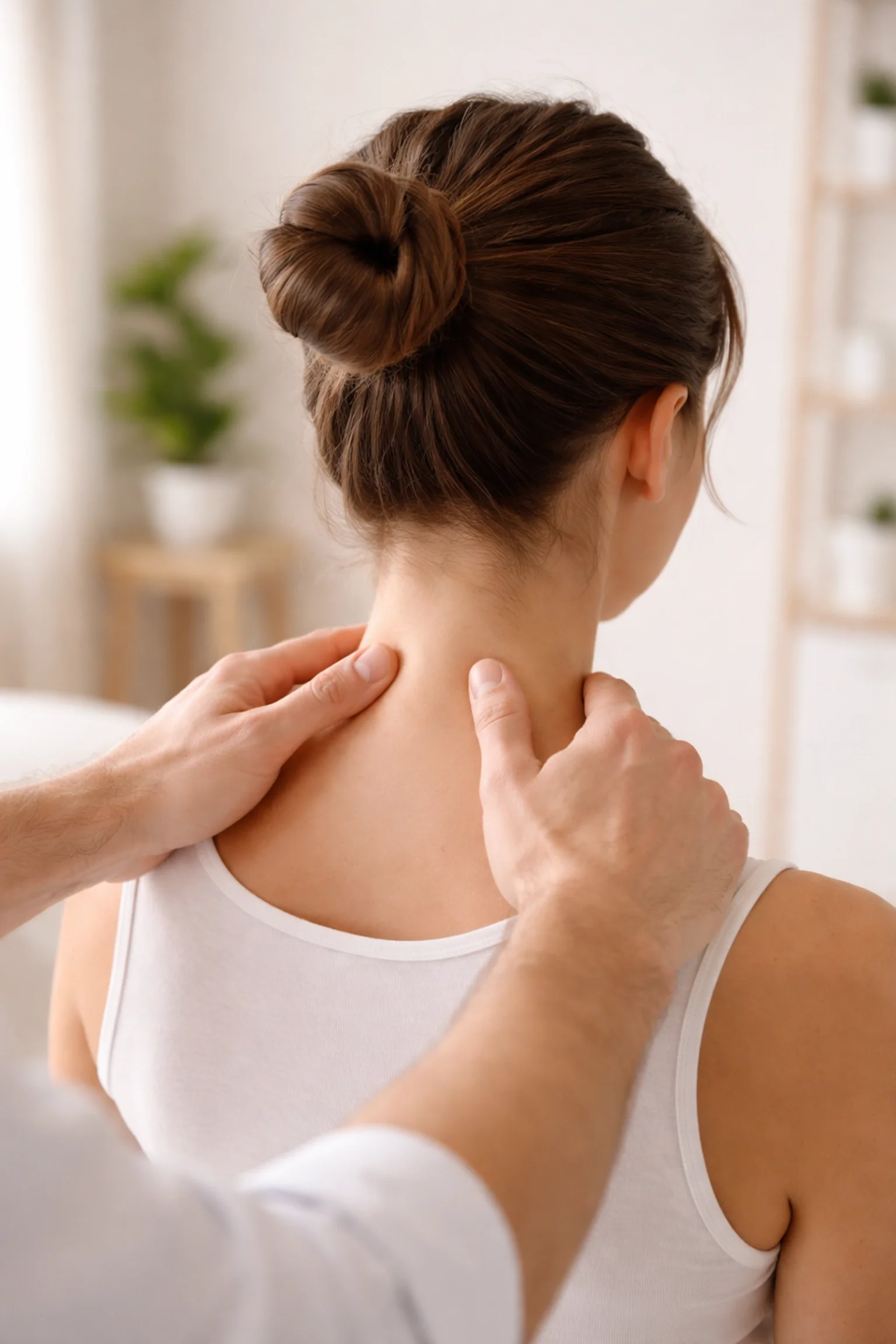 The back of a women’s neck getting a massage
